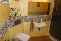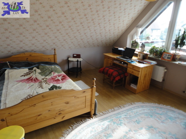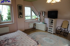 Piętro na którym znajdują się cztery pokoje- sypialnie 12,11,21,14 mkw, łazienka 7 mkw., pomieszczenie socjalne- schowek, hol z którego prowadza schody na poddasze. Na podłogach są panele. Ściany gładzone malowane. Piwnica w którym znajdują się cztery pomieszczenia i garaż dwu stanowiskowy. W 2009 r. był przeprowadzony w domu remont ale tak naprawdę nie był konieczny ponieważ dom był w bardzo dobrym stanie.