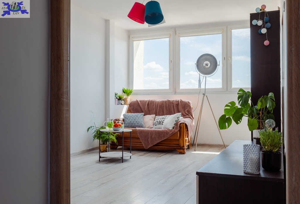 - Słoneczny salon z wyjściem na balkon,