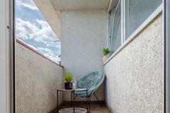 - Słoneczny salon z wyjściem na balkon,