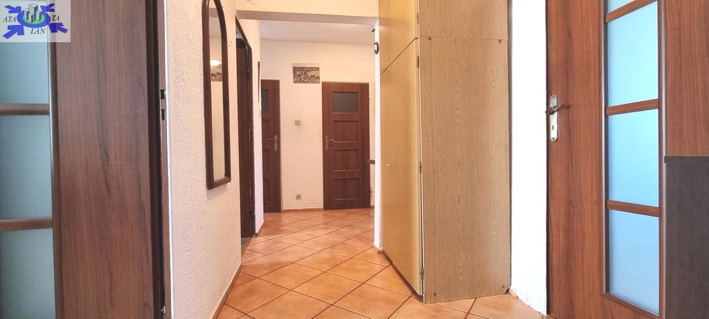 Podłogi w pokojach wyłożone są panelami, ściany gładkie malowane. Kuchnia wyposażona w meble z drewnianymi frontami i wykończona glazurą i terakotą. Łazienka w jasnych kaflach z wanną i miejscem na pralkę, wc osobno. Przestronny korytarz wykończony terakotą. Jedna z sypialni posiada obszerną zabudowę szafy, dodatkowo dwie szafy wolnostojące. Okna PCV, drzwi wejściowe antywłamaniowe. Wielkim atutem mieszkania jest duży balkon położony od zachodu oraz środkowe położenie lokalu. Coroczne zwroty za ogrzewanie w wysokości około 1500 złotych.