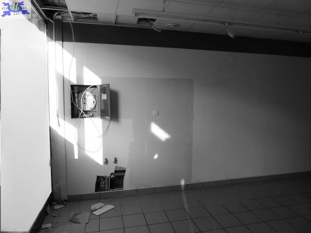 Na sali głównej na podłodze są kafle, ściany gładzone i malowane, sufity podwieszane z oświetleniem rastrowym.