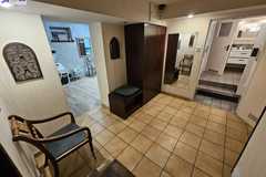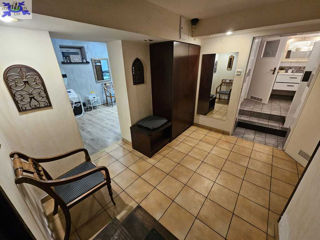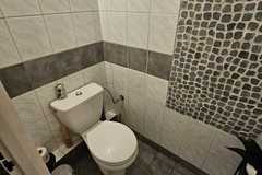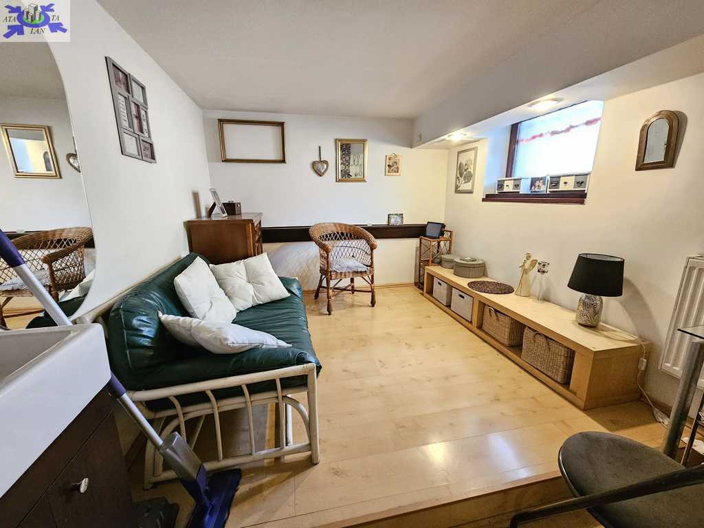 Na parterze znajdują się 2 duże pomieszczenia, hol oraz zaplecze kuchenne. Schodkami schodzimy do przyziemia gdzie znajdują się 2 większe pomieszczenia, korytarz, łazienka z wc i pomieszczenia pomocnicze. Na podłogach znajduje się gres oraz panele.