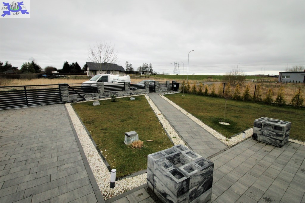 Całość posesji ogrodzona. Brama wjazdowa , furtki, brama garażowa otwierane za pomocą pilota lub smartfona. Zamontowany monitoring oraz system alarmowy z powiadomieniem na telefon.