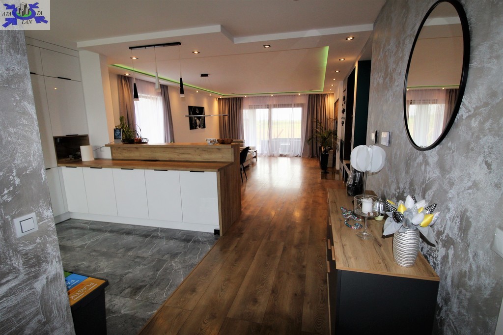 Niewątpliwym atutem domu jest system rekuperacji (system wentylacji mechanicznej), gdzie za pomocą telefonu podejrzymy wilgotność oraz jakość powietrza, jak również stacja uzdatniania wody, dzięki której mamy pewność, że woda nie posiada kamienia.