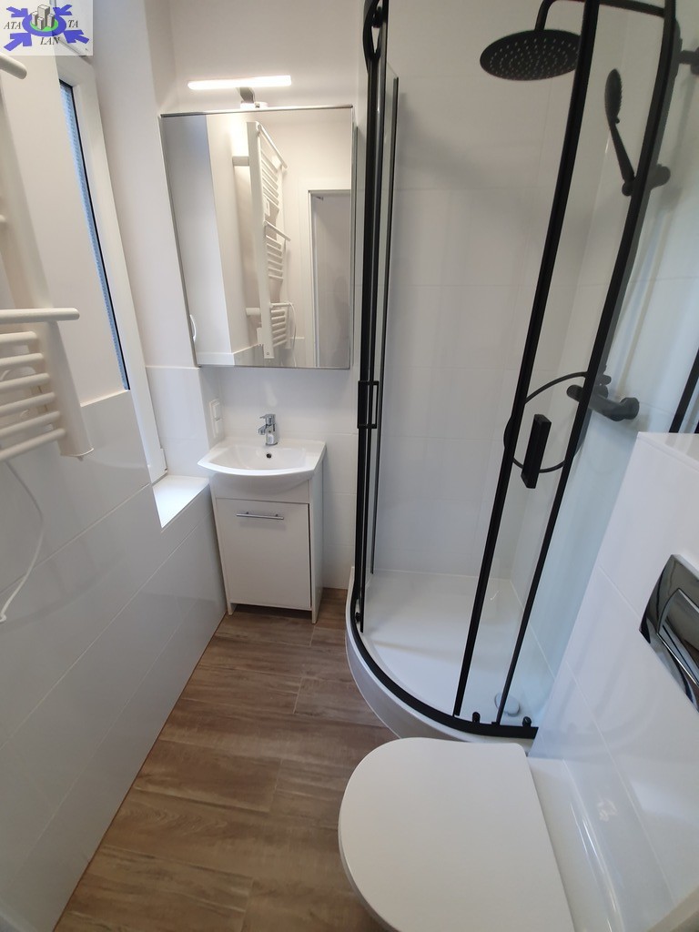 Kawalerka 1 posiada duży jasny pokój z wyjściem na balkon, aneks kuchenny i łazienkę. Dużym atutem jest spora antresola gdzie najemca może spać. Łazienka w nowoczesnej kolorystyce. W pełni umeblowane i wyposażone.