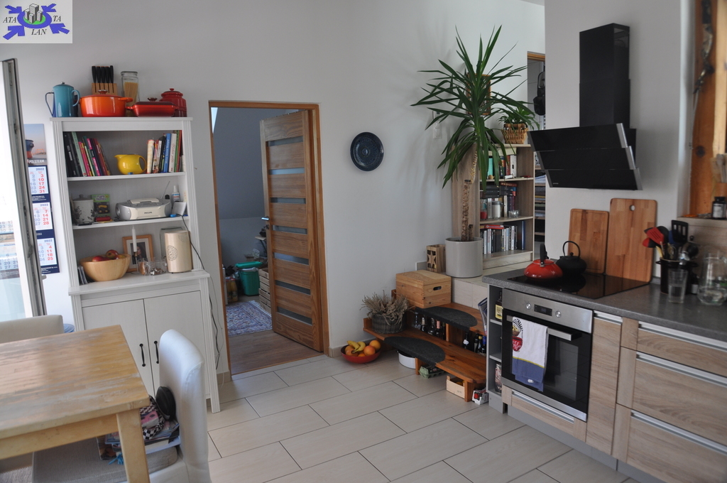 -kuchnia z jadalnią (15,6m2) z wyjściem na 20-to metrowy taras w pełni umeblowana i wyposażona (kuchenka, zmywarka, lodówka)