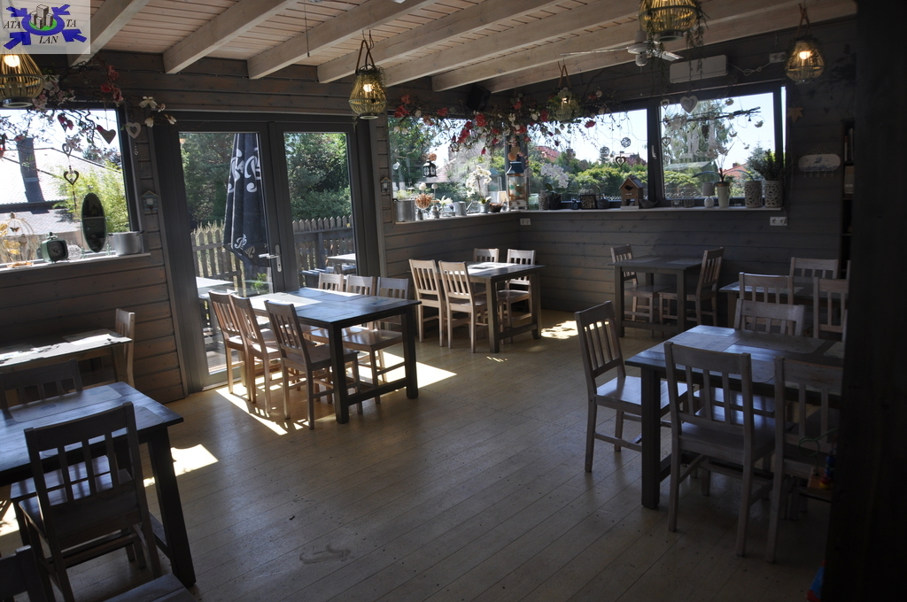 Sala konsumpcyjna, barek, kuchnia, duże zaplecze, toaleta dla gości, kotłownia, wc wyjście na taras i do ogródka.