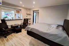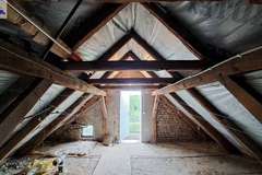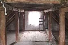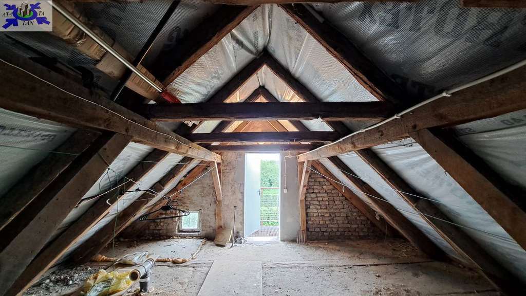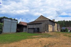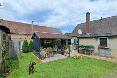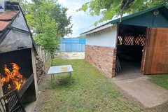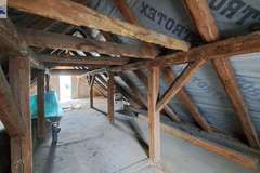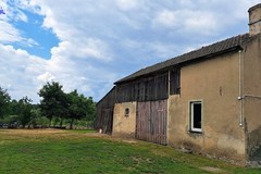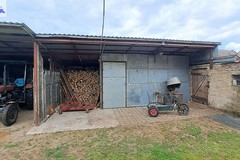 Stodoła - część murowana (22 m2) - składa się z dużego podpiwniczonego pomieszczenia (obecnie tzw. letnia kuchnia -22 m2, piwnica 12 m2, poddasze 22m2), dużego garażu z pomieszczeniem gospodarczym (36 m2) oraz częścią w konstrukcji drewnianej gdzie znajduje się drewutnia (ok 30m2). Nad garażem gospodarczy strych.