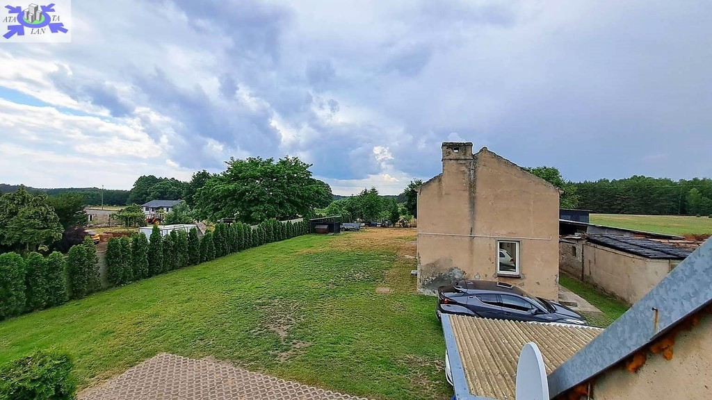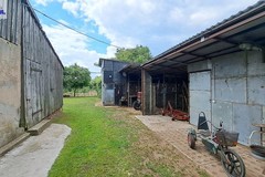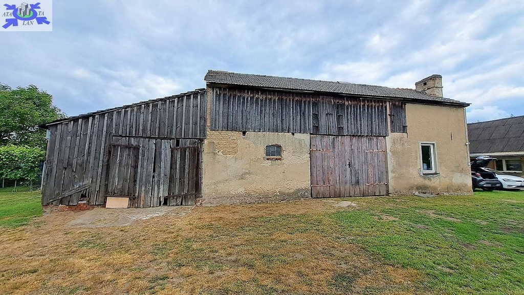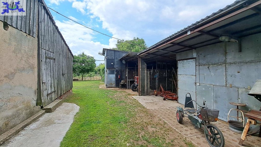 Przy stodole znajdują także inne budynki gospodarcze wykorzystywane jako przydomowy warsztat (18m2), dalej w ciągu zabudowań i wiat dostawiony duży garaż z kanałem (30 m2, h 4,2 m plus kanał 6 m gł. 1,6m).