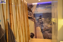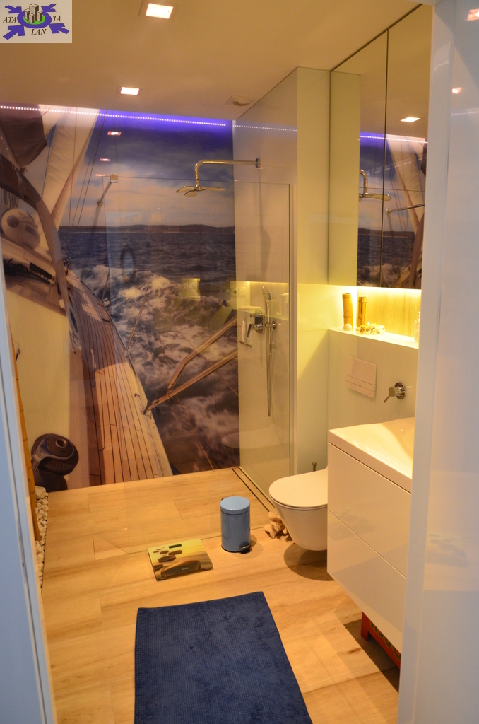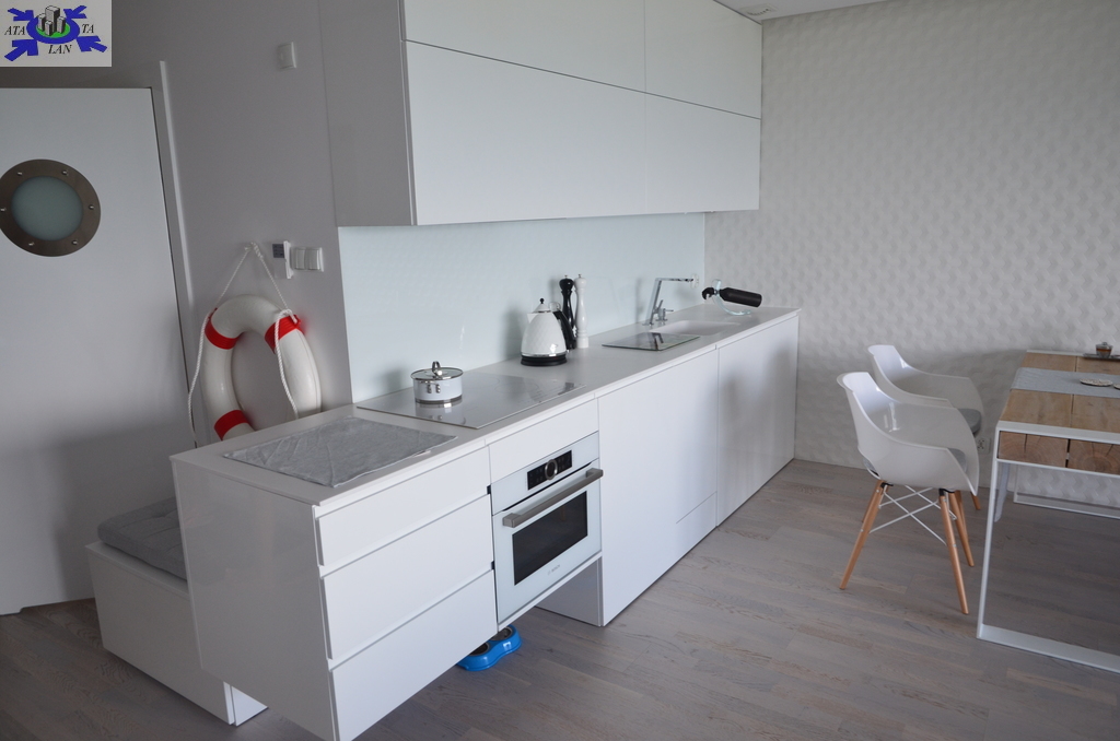Apartament wykończony materiałami najwyższej klasy z pomocą projektantów z dbałością o wszystkie szczegóły i detale. Wszystko w jednolitej jasnej i ciepłej tonacji kolorystycznej z zachowaniem marynistycznego klimatu.