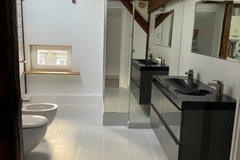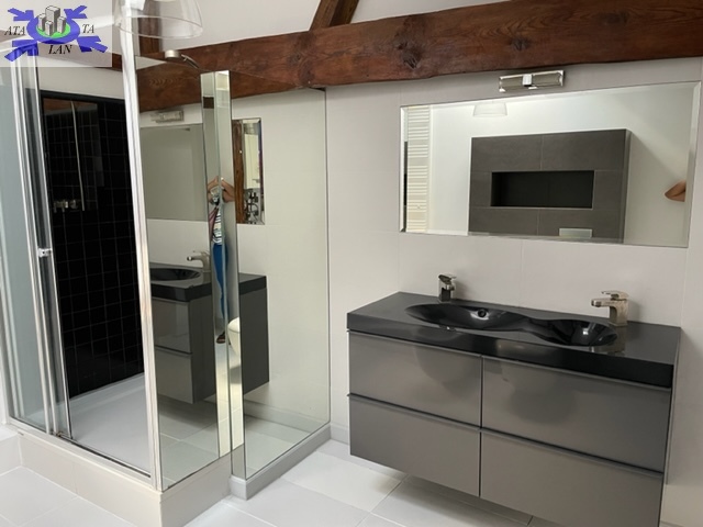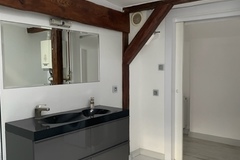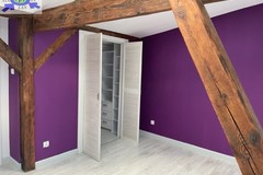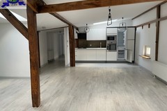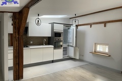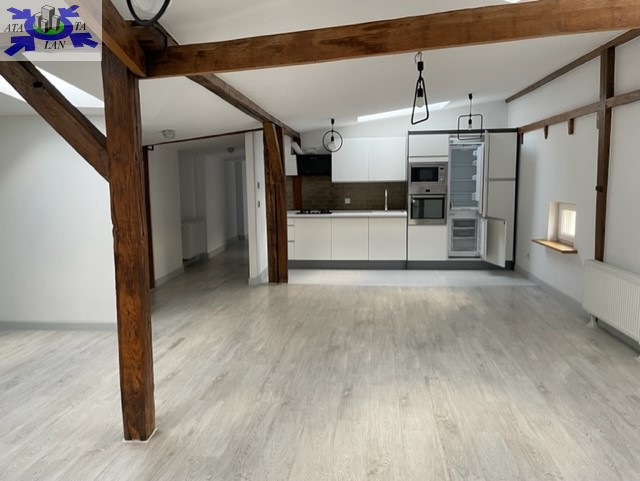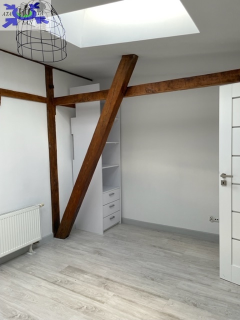 Mieszkanie gustownie urządzone. Na ścianach gładzie, na podłogach panele, okna częściowo połaciowe, częściowo PCV, zachowane i odrestaurowane drewniane belki.