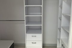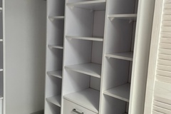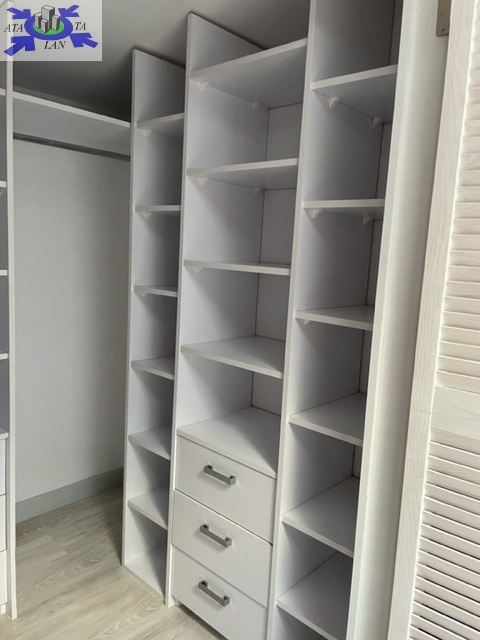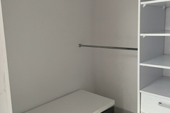 Dwie sypialnie posiadają duże garderoby, do których wchodzimy przez uchylne drzwi.