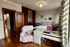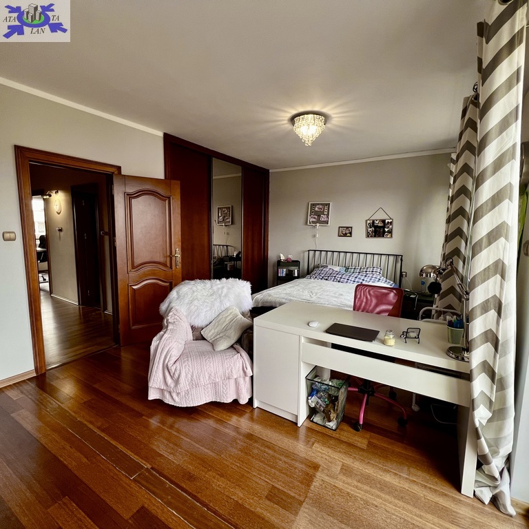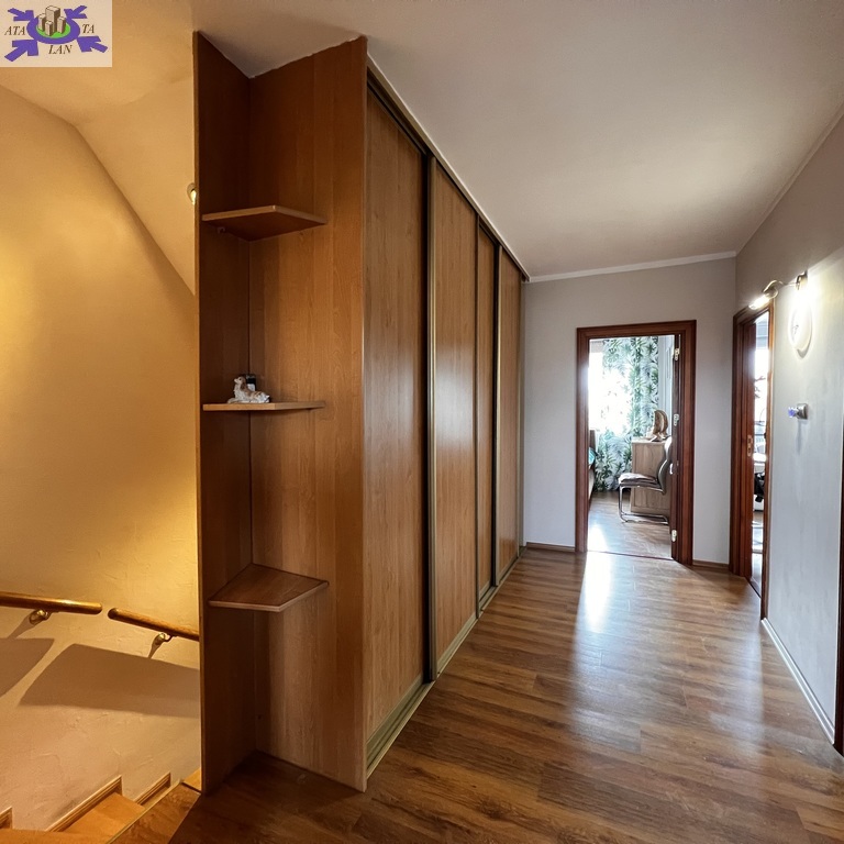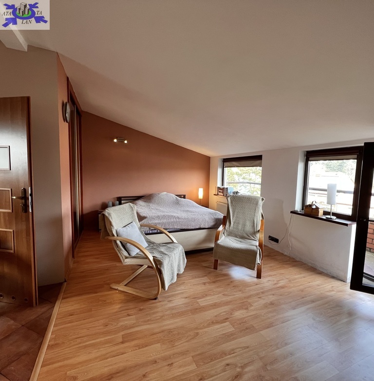 Na piętrze znajdują się łazienka z WC, 3 niezależne sypialnie oraz przedpokój z szafą w zabudowie.