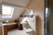 Użytkowe poddasze składa się z otwartej przestrzeni, z której właściciele korzystają, mając sypialnię i małe biuro oraz łazienkę z oknem.