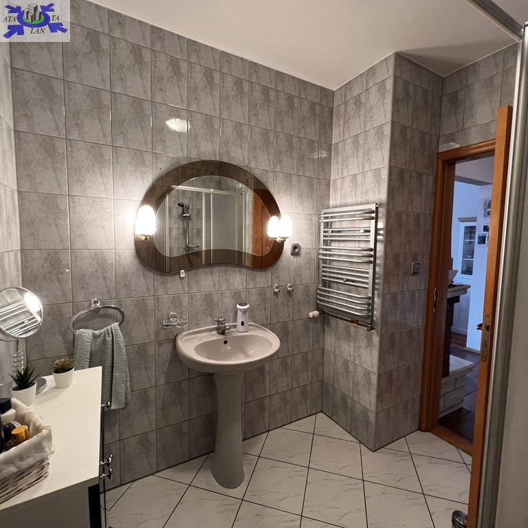 Kuchnia wyposażona w meble w zabudowie kuchennej, zmywarkę, lodówkę, płytę indukcyjną oraz okap. Wszystkie łazienki wyposażone w umywalkę, WC oraz grzejnik drabinkowy na parterze oraz poddaszu prysznic a na piętrze jest wanna.
