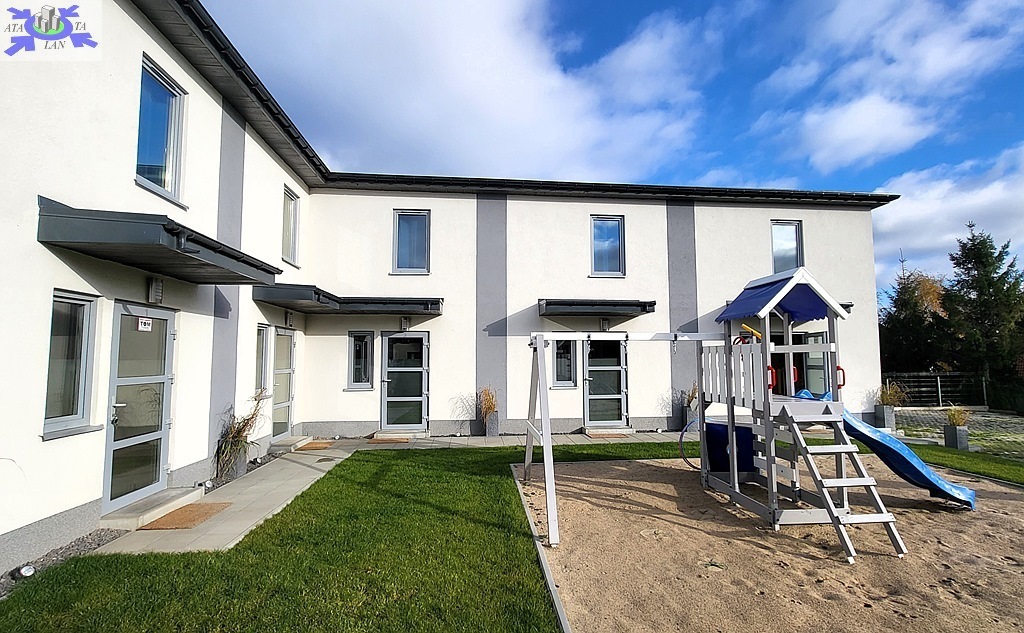 Teren wokół nienagannie zagospodarowany, przygotowany mały plac zabaw dla dzieci, wydzielony parking na 10 miejsc postojowych.