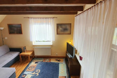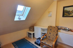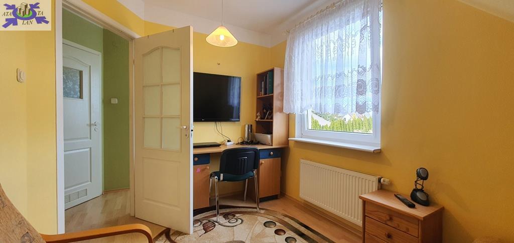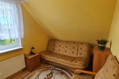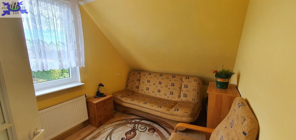 W pokojach na podłogach panele, ściany i sufity gładzone i malowane. Jeden z pokoi na piętrze składa się z dwóch części gabinetu i części wypoczynkowej z kanapą narożnikową i TV. Z tego pokoju jest również wejście na strych/poddasze, gdzie został zaaranżowany dodatkowy pokój z podwójnym miejscem do spania.