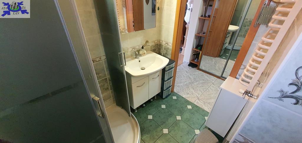 - łazienka z WC, umywalką i kabiną prysznicową,