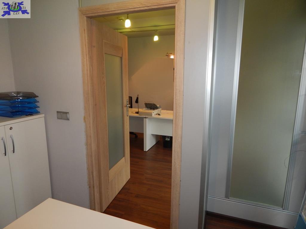 - w części biurowo-usługowej z osobnym wejściem z ulicy (sala sprzedaży/obsługi klienta ok. 20 m2, gabinet (ok. 4 m2), pomieszczenie socjalne z aneksem kuchennym oraz toaleta).