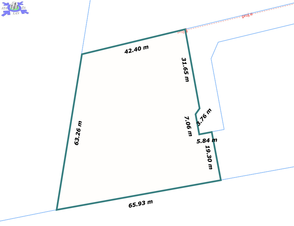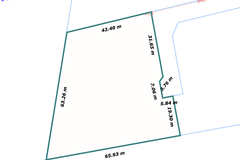 Kształt działki zbliżony do trapezu, wymiary ok. 40m x 50m.