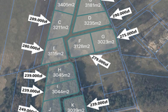 Dostępnych jest łącznie 7 działek z wydanymi warunkami zabudowy oznaczone jako "A"-"G" (3023m2 3115m2 3128m2 3181m2 3211m2 3235m2 oraz 3405m2) oraz 4 zalesione działki bez wydanych warunków zabudowy oznaczone jako "H"-"K" (3039m2 3044m2 3045m2 oraz 3121m2).