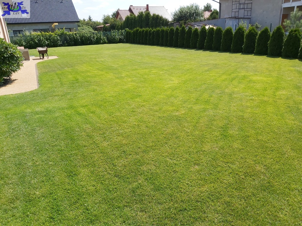 Ogród wyposażony w automatyczny system podlewania trawnika, studnia z hydroforem .