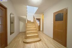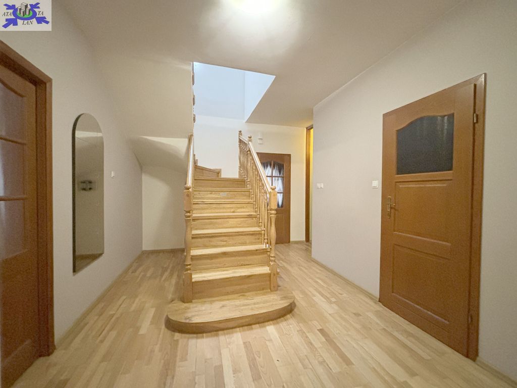Na podłogach na parterze deska barlinecka i terakota, na podłogach na piętrze panele, ściany gładzone i malowane.