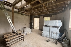 Fundamenty betonowe, ściany zewnętrzne i wewnętrzne murowane z bloczków gazobetonowych, stropy drewniane.