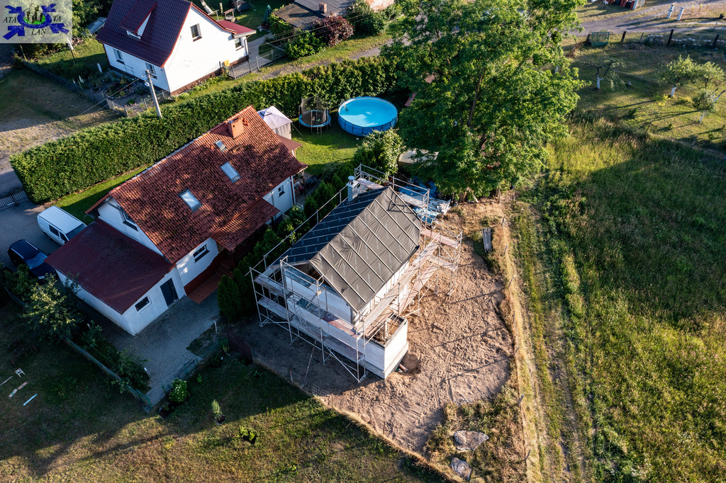 Na działce prowadzona jest budowa domu jednorodzinnego wolnostojącego o powierzchni użytkowej około 70 m i pomieszczenia gospodarczego.