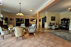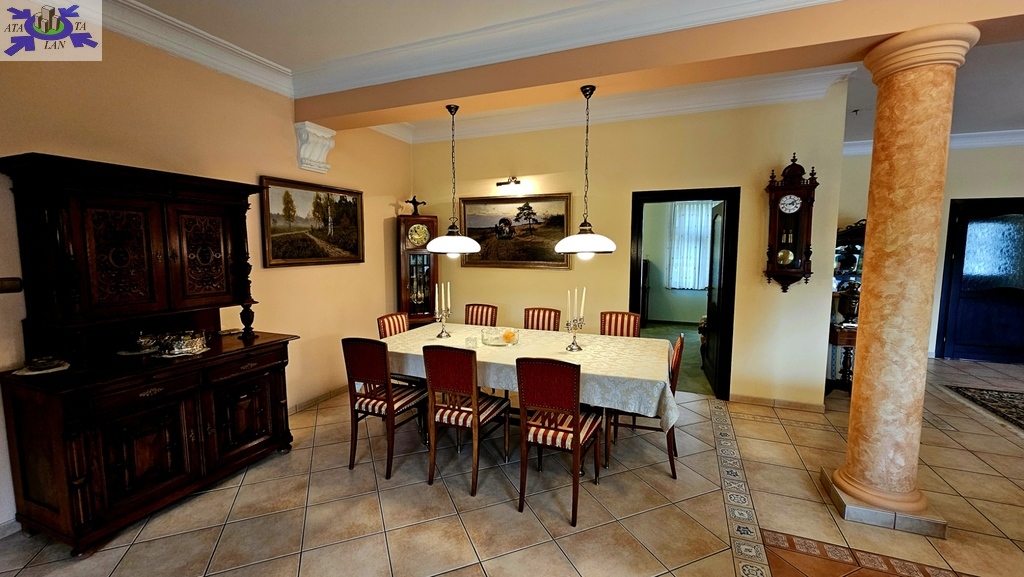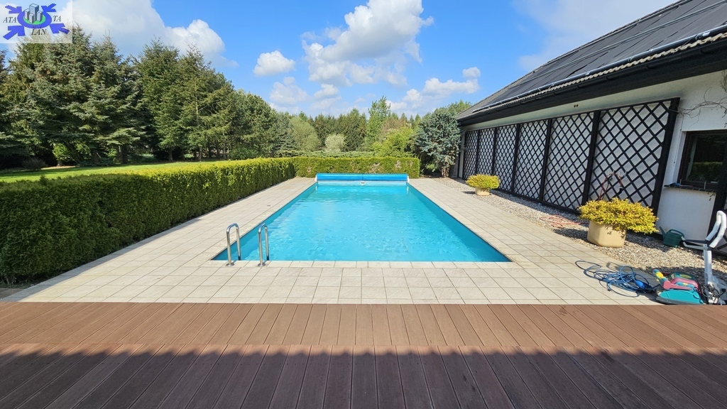 Do sprzedania nietuzinkowa rezydencja położona na dwu hektarowej działce otoczonej otuliną prywatnego lasu. Nieruchomość wybudowana w formie dworku z prywatnym basenem jeziorkiem oraz domkiem dla gości. Całość domu wybudowana w 2001 roku z bloczków firmy Fortis pokryta dachówką cementową. Okna PCV z szybami antywłamaniowymi w kolorze palisander. CO i CW własne gazowe + wspomaganie poprzez baterie solarne. Zamontowana instalacja fotowoltaiczna o mocy 9,5 kWh co w całości pokrywa zapotrzebowanie w energie elektryczną całego domu. Na 716 m powierzchni całkowitej składają się hol, WC, trzy sypialnie, kuchnia, jadalnia, spiżarnia, trzy łazienki razem z WC, pomieszczenia gospodarcze, pralnia, pokój relaksu z sauną, garaż trzy stanowiskowy z kanałem. 113- metrowy salon z wyjściem poprzez system panoramicznego okna przesuwnego typu HS na duży taras i zejście do basenu. Kominek w salonie + kominek z grillem za tarasie ogrodowym. Basen o wymiarach 12x5, woda z własnego ujęcia ze studni ogrzewana poprzez maty solarne oraz pompę ciepła. Całość poddasza użytkowego wielkości 288 m2 do dodatkowego zagospodarowania. Obok domu znajduje się 70 m2 całoroczny domek dla gości (salon +sypialnia + kuchnia +łazienka). Część ogrodowa wyposażona w system automatycznego podlewania z własnej studni głębinowej. Całość posesji zagospodarowana 30-sto letnim drzewostanem z wkomponowanym zarybionym stawem. Dwa lata temu została wymieniona na zupełnie nową oczyszczalnia biologiczna dla całej posesji. Rezydencja dla osób cenionych prywatność spokój i komfort. Zapraszamy na prezentację opisywanej rezydencji. Chcesz się poczuć luksusowo to zapraszam do osobistej weryfikacji i kontaktu z maklerem prowadzącym.