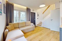 wraz z ogródkiem na parterze oraz z częścią sypialną na piętrze (2 oddzielne pokoje).