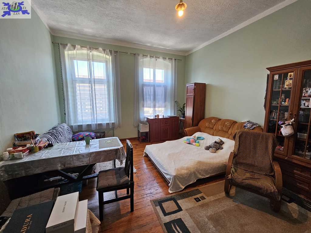 Mieszkanie przestronne, pokoje rozkładowe, jeden przejściowy. Składa się z czterech pokoi o powierzchni 25, 24, 13 i 13m2, kuchni 13,4m2, łazienki z wc 5m2 i przedpokoju 8m2. Istnieje możliwość uzyskania 5-6 pokoi i wynajmowania na pokoje.