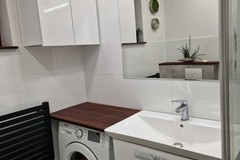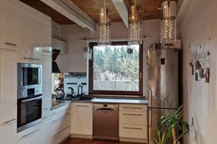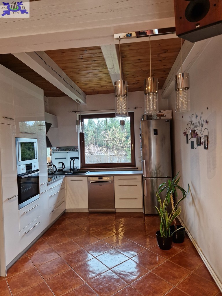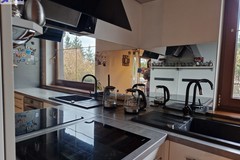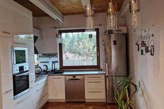 Spójna przestrzeń salon połączony z otwartą, funkcjonalną kuchnią z pełnym wyposażeniem doświetloną oknem. Kominek, z salonu bezpośrednie wyjście na taras i ogród.