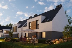 Urokliwe, kameralne osiedle w Mierzynie tworzyć będzie osiem nowoczesnych energooszczędnych domów dwurodzinnych, w których zaprojektowano szesnaście apartamentów. Lokale 5-pokojowe, każdy o powierzchni użytkowej po 73,79 m2 (powierzchnia całkowita lokalu wynosi 117,25 m kw.), posiada balkon i przydomowym ogródek. Do każdego apartamentu przynależą dwa miejsce postojowe przed budynkiem. Standard wykończenia lokali -deweloperski i obejmuje wykonanie m in. ogrzewania podłogowego w każdym z pomieszczeń, systemu domofonowego i instalacji pod kominek. Na lokal przysługuje 5-letnia rękojmia od dewelopera. Osiedle całkowicie ogrodzone, w którym przewidziano dwa osobne wjazdy z bramą otwieraną na pilota. Inwestycję wyróżnia niezaprzeczalnie interesująca i gustowna architektura z dozą elegancji. Energooszczędność domów mają zapewnić przyjęte rozwiązania architektoniczne izolacje ścian i podłóg, stolarka okienna. Dla miłośników dwóch kółek pomyśleliśmy o wiacie osiedlowej ze stojakami dla rowerów. Zakończenie prac budowlanych całego osiedla nastąpi w trzecim kwartale 2025 roku.