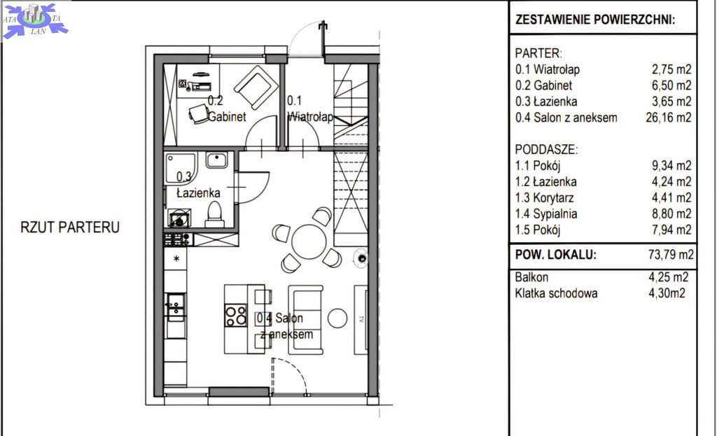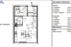 Powierzchnie lokali 73,79 m kw. (powierzchnia całkowita 117,25 m kw.)