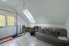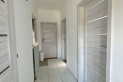 W pokojach na piętrze na podłogach panele, ściany gładzone i malowane. W korytarzu na piętrze gres. Łazienka i garderoba na górze do zrobienia.