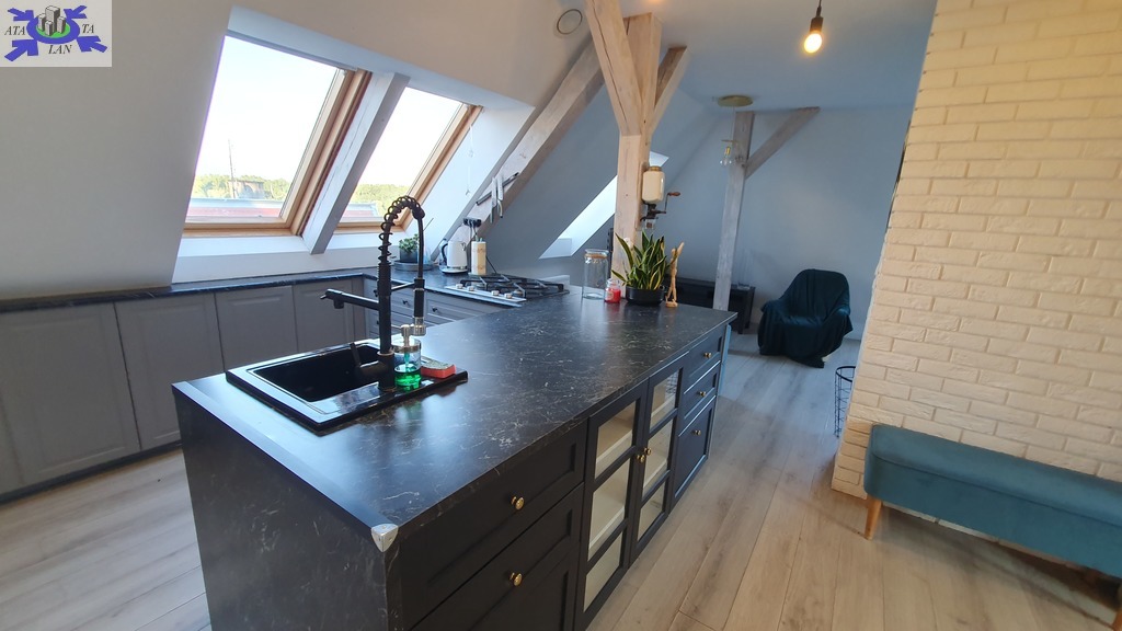 - przestronny salon z aneksem kuchennym i częścią wypoczynkową,