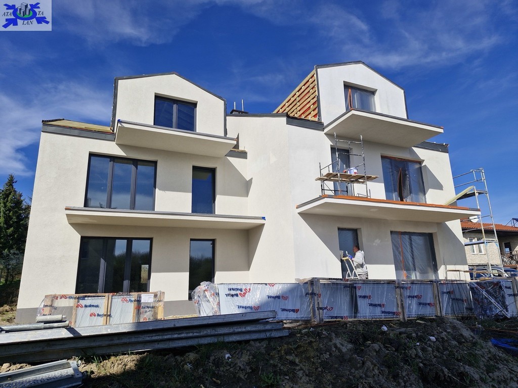 Na apartament o powierzchni 138,16 m 2 składają się dwa poziomy. Na poziomie pierwszym znajdują się 3 pokoje salon z aneksem kuchennym 35,86 m 2, pokój 14,60 m 2, pokój 9,50 m 2, korytarz 6,23 m 2 i łazienka 4,51 m 2 a także duży taras o powierzchni 21,15 m 2. Na poziomie drugim czyli na poddaszu użytkowym znajdują się dwa pokoje 44,08 m 2 i 17,71 m 2 łazienka 4,51 m 2, korytarz 1,16 m 2 oraz taras 18 m 2. Z obu tarasów rozciąga się cudowny widok na przyrodę. Ogromnym atutem apartamentu jest to,że może spełniać dwóch niezależnych mieszkań. Do apartamentu przynależy ogród, a także miejsca parkingowe.