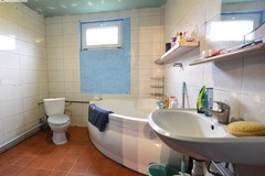 Dach kryty dachówką. Ogrzewanie z pieca na opał stały. Bieżąca ciepła woda z podgrzewacza elektrycznego. Dom po częściowym remoncie. Część wymaga gruntownego remontu, obecnie pełni funkcje gospodarczą. Budynek częściowo podpiwniczony, ca 15m2. Kanalizacja w formie szamba.