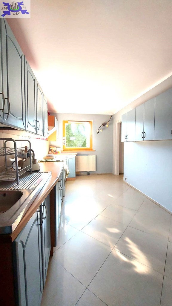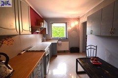 Duża jasna kuchnia z oknem, wyposażona w meble i sprzęt AGD w cenie zakupu nieruchomości.