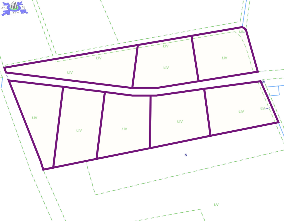 Dostępnych jest łącznie 8 działek z wydanymi warunkami zabudowy oznaczone jako "A"-"H" (1364m2 1214m2 1174m2 1185m2 1379m2 1286m2 1259m2 oraz 1259m2).