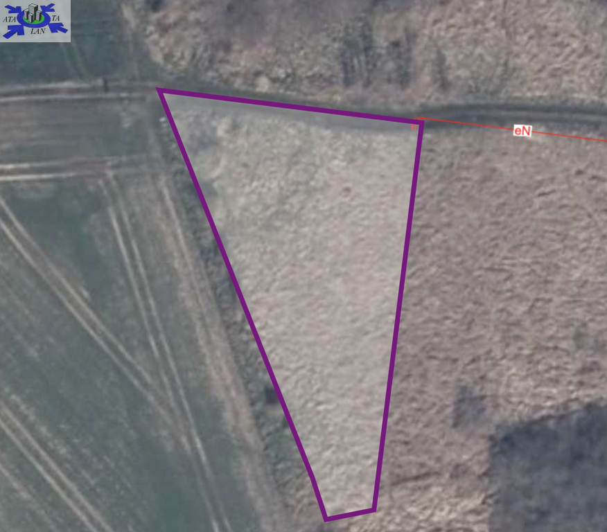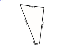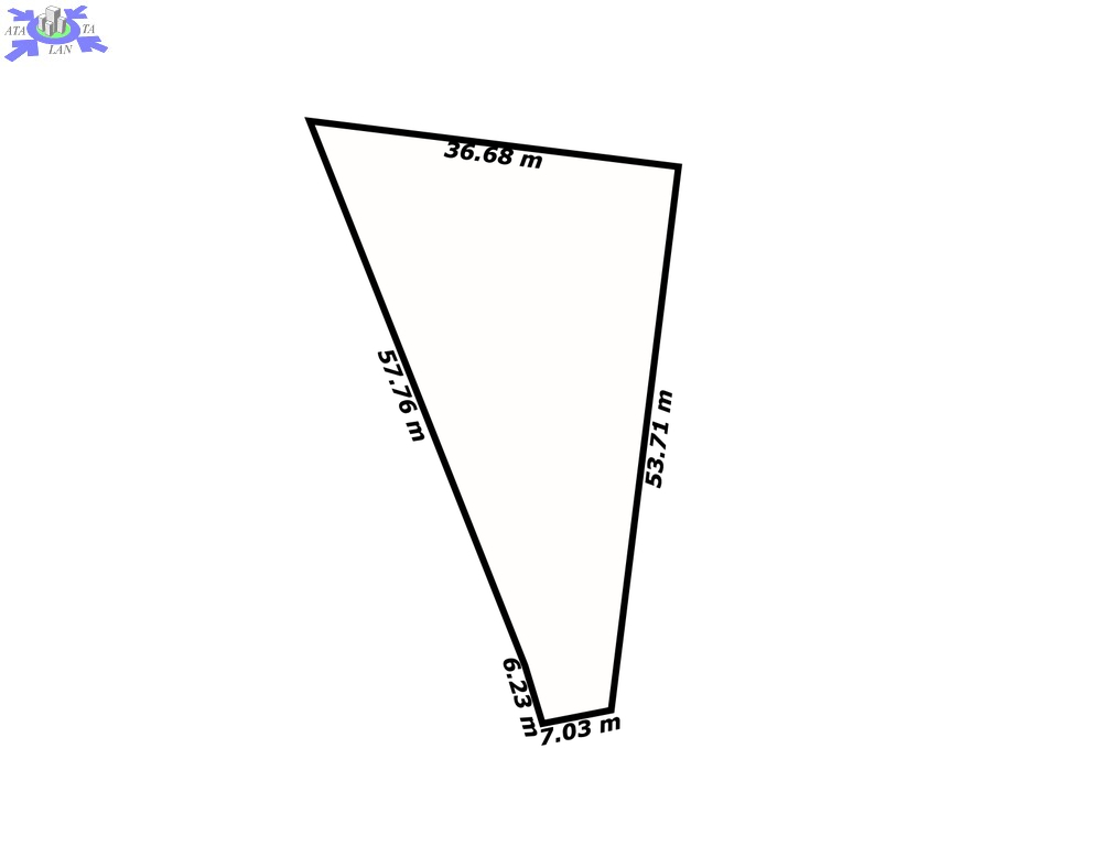 Kształt działki zbliżony do trójkąta, wymiary ok. 36m x 57m.