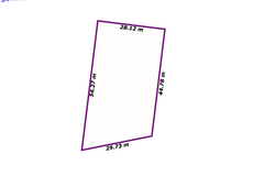 Kształt działki zbliżony do trapezu, wymiary ok. 28m x 54m.
