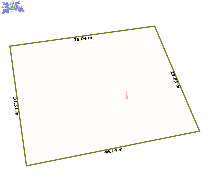 Kształt działki zbliżony do prostokąta, wymiary ok. 31m x 46m.