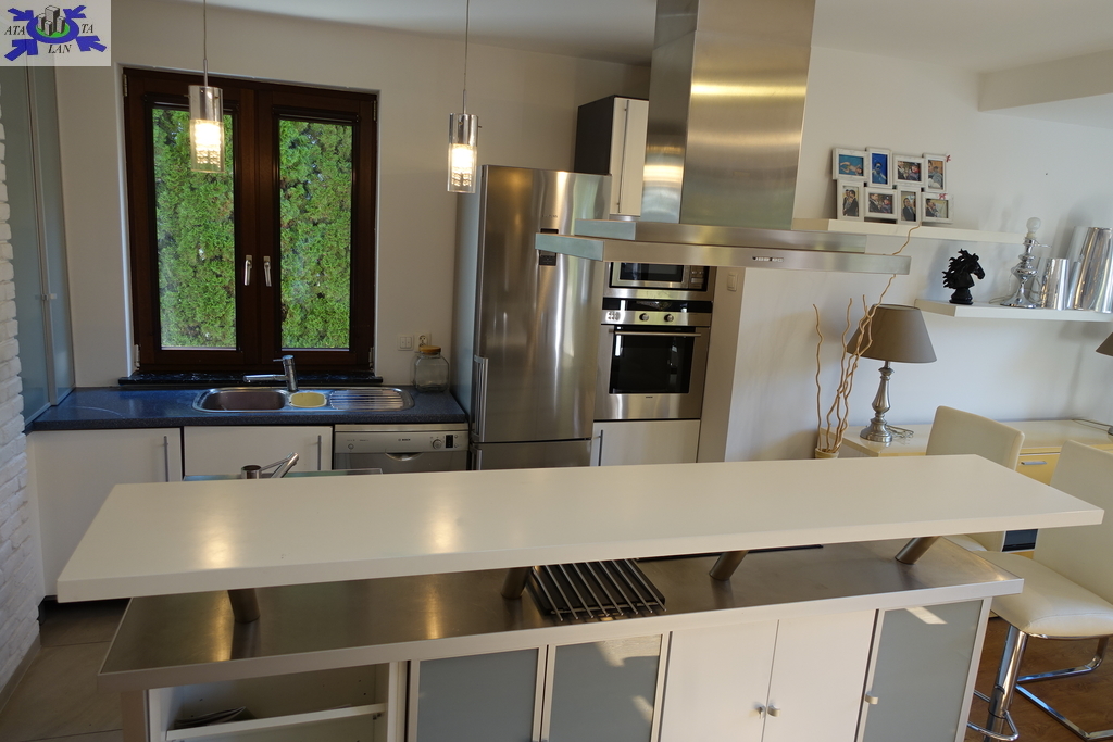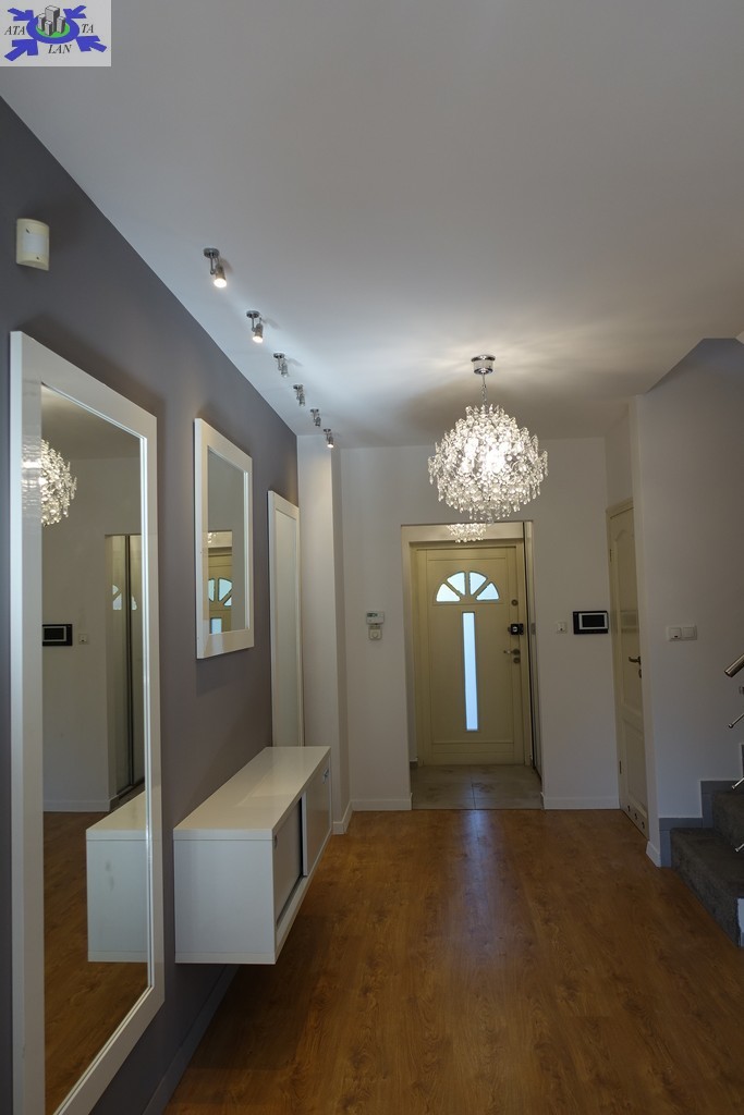 Perfectly located new house in Mierzyn. Furnished and arranged. AVAILABLE IMMEDIATELY. Living room with fireplace, kitchen with dining room, 3 bedrooms, bathroom, toilet, vestibule and garage. High quality materials were used for construction. Porotherm, roof covered with ceramic tiles. Wooden windows, roof windows. Anti-burglary external doors. House insulated with polystyrene, plastered. Solar panels installed on the roof. Furnished, kitchen with built-in furniture and appliances. Built in 1999. Plot area 502 m2. Usable area 120 m2, total area 150 m2. House HOUSE DESCRIPTION GROUND FLOOR living room combined with bright kitchen and dining room approx. 55 m2, hall approx. 8 m2, toilet 3 m2, vestibule 2.5 m2, boiler room with garage approx. 24 m2 From the living room exit to the garden and terrace. On the floors, panels and terracotta. Built-in kitchen furniture with household appliances from Siemens and Bosch fridge with freezer, 60 cm dishwasher, ceramic hob, oven. In the garden, a gazebo, a barbecue area and a round swimming pool with a diameter of 5.5 m. FIRST FLOOR 3 bedrooms with, among others, skylights, a bathroom of 12.5 m2 m2 with a bathtub, shower cubicle, toilet and bidet and washbasin. Large balcony of 12 m2. Comfortable, wide stairs between floors. The building has water and sewage installations. Heating and hot water from a gas furnace and photovoltaics. From the windows, a view of distant properties and greenery. The area in front of the building is paved with cubes. Fence with a gate. Location close to the exit towards the border. Rental price PLN 6,900 + utilities.
