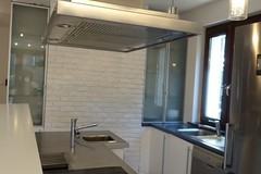 Z salonu wyjście na taras i do ogrodu. Na podłogach panele i terakota. Meble kuchenne w zabudowie wraz ze sprzętem AGD firmy Siemens oraz Bosch lodówka z zamrażarką, zmywarka 60 cm, płyta ceramiczna, piekarnik.