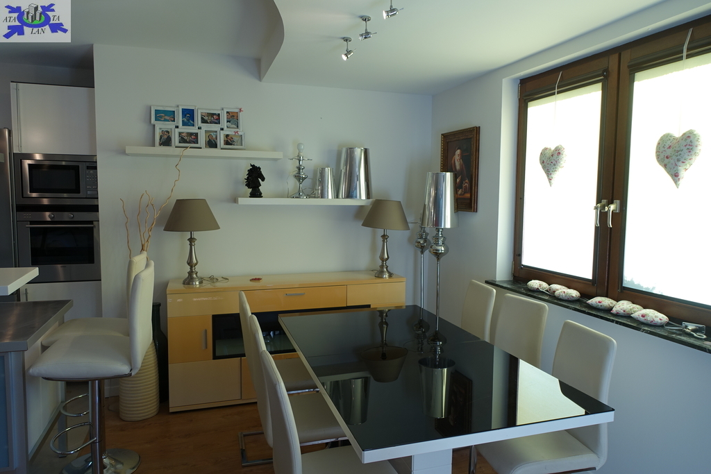 This new, detached house in Mierzyn, ideally located in a quiet area, was built with high-quality materials in 1999. Quick delivery. It features a living room with a fireplace, a kitchen with a dining area, three bedrooms, a bathroom, a toilet, a vestibule, and a garage. High-quality materials were used in the construction, including Porotherm, a tiled roof. Wooden windows and attic windows. Burglar-proof exterior doors. The house is insulated with Styrofoam and plastered. Solar panels are installed on the roof. Furnished, with a kitchen with built-ins and appliances. The usable area is 120 m2, with a total area of 150 m2. A single-car garage is built into the building. The windows are equipped with automatic roller shutters. PLOT Plot area 502 m2. HOUSE DESCRIPTION GROUND FLOOR Living room with a bright kitchen and dining area of approx. 55 m2, hall of approx. 8 m2, toilet of 3 m2, vestibule of 2.5 m2, boiler room with garage of approx. 24 m2. The living room offers access to the terrace and garden. Floors are laminate and terracotta. Built-in kitchen units with Siemens and Bosch appliances refrigerator with freezer, 60 cm dishwasher, ceramic hob, and oven. The garden features a gazebo, barbecue area, and a heated, circular swimming pool with a diameter of 5.5 m. FIRST FLOOR 3 bedrooms with skylights, among other features, a 12.5 m2 bathroom with a bathtub, shower, toilet, bidet, and washbasin. A large 12 m2 balcony. Comfortable, wide stairs between floors. The building is equipped with plumbing and sewage systems. Heating and hot water are provided by a gas boiler and photovoltaics. The windows overlook distant properties and greenery. The area in front of the building is paved. Fenced with a remote-controlled gate. Located near the border exit.