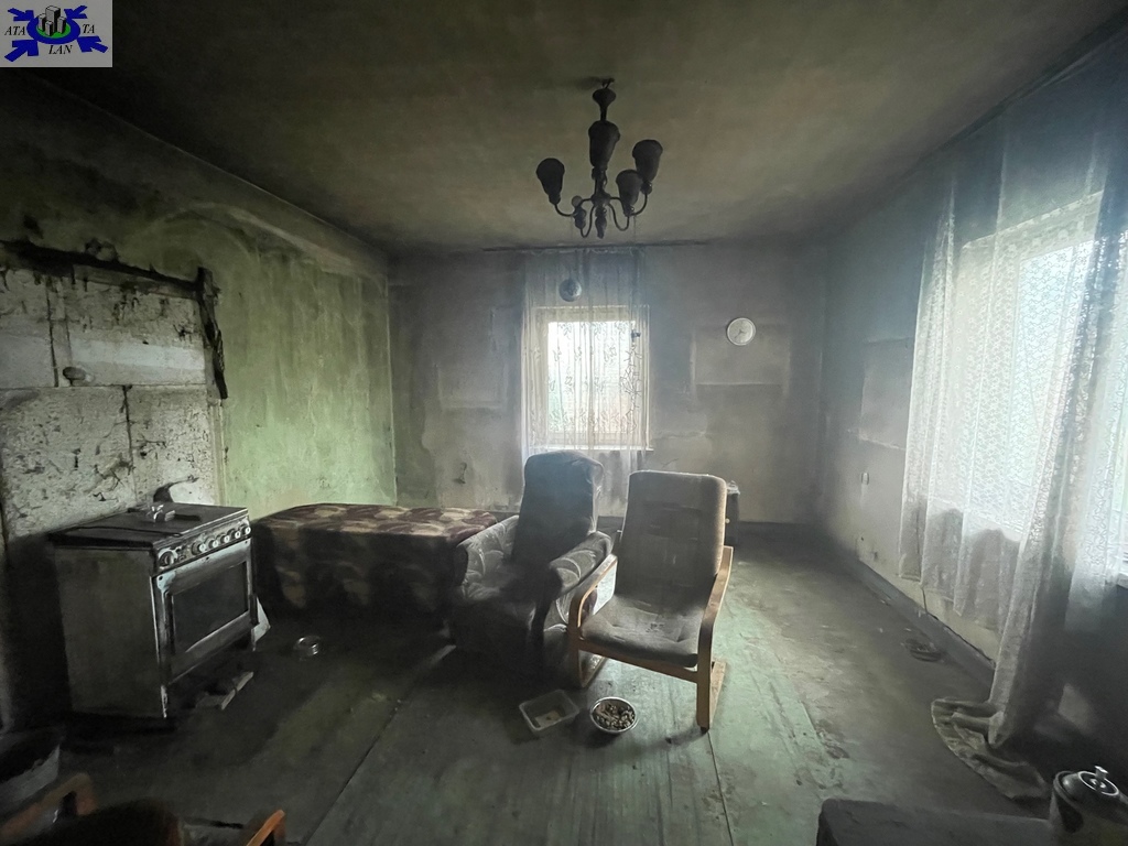 Do sprzedaży nieruchomość zabudowana budynkiem mieszkalnym wolnostojącym o powierzchni zabudowy 125 m2, budynkiem o funkcji budynki produkcyjne usługowe i gospodarcze dla rolnictwa o pow. zab. 21 m2 oraz budynkiem o podobnej funkcji o pow. 14 m2.. Budynek z okresu z okresu przedwojennego położony na działce o pow. 824. Dom do kapitalnego remontu. Dom składa się z parteru i poddasza użytkowego. Na parterze znajdują się trzy osobne pokoje, korytarz, pomieszczenie gospodarcze.