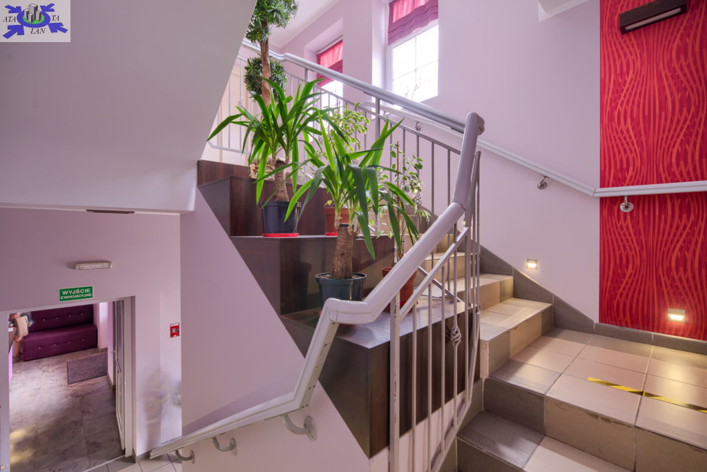 PARTER recepcja, pomieszczenia rehabilitacji i odnowy biologicznej, toalety, mieszkanie właściciela, hall, korytarze, klatka schodowa, kotłownia, zaplecze kuchenne