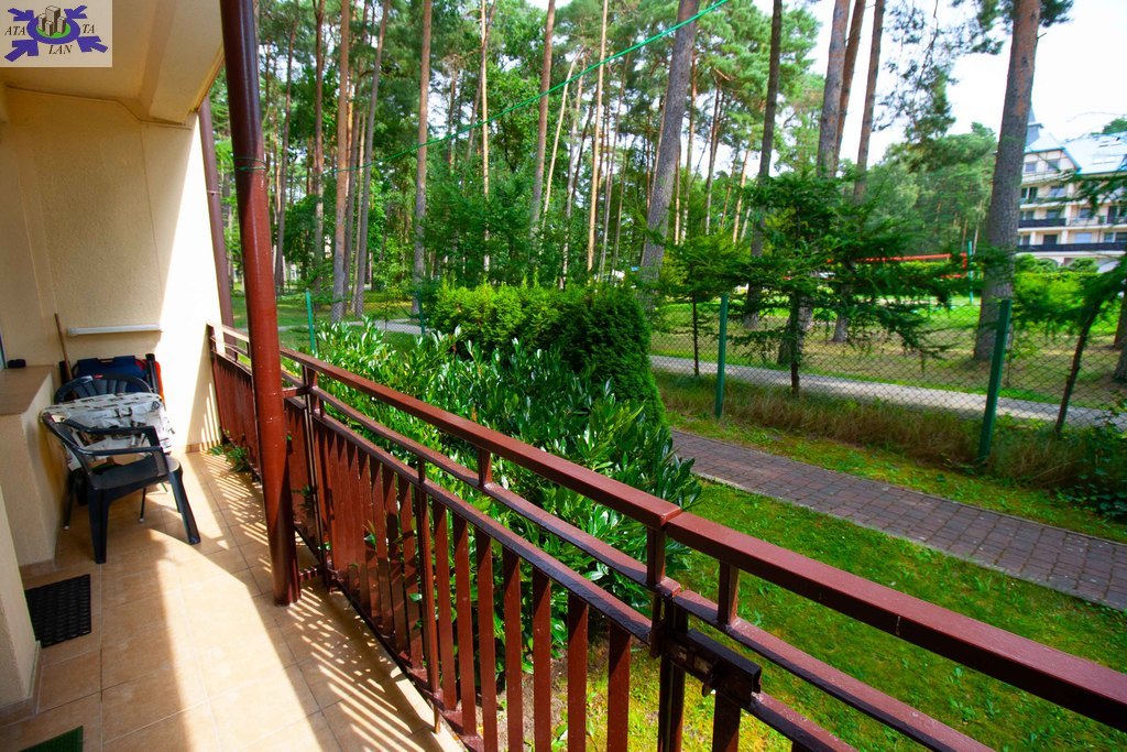 Na powierzchnię użytkową apartamentu 35,18 składa się salon z kuchnią w formie aneksu kuchennego z wyjściem na duży balkon / taras z widokiem na zieleń, oddzielna sypialnia z dużą szafą w zabudowie - także z wyjściem na balkon, łazienka z kabiną prysznicową i toaletą. Całość zabudowy i wyposażenia pozostaje w cenie nieruchomości. W oknach żaluzje antywłamaniowe.